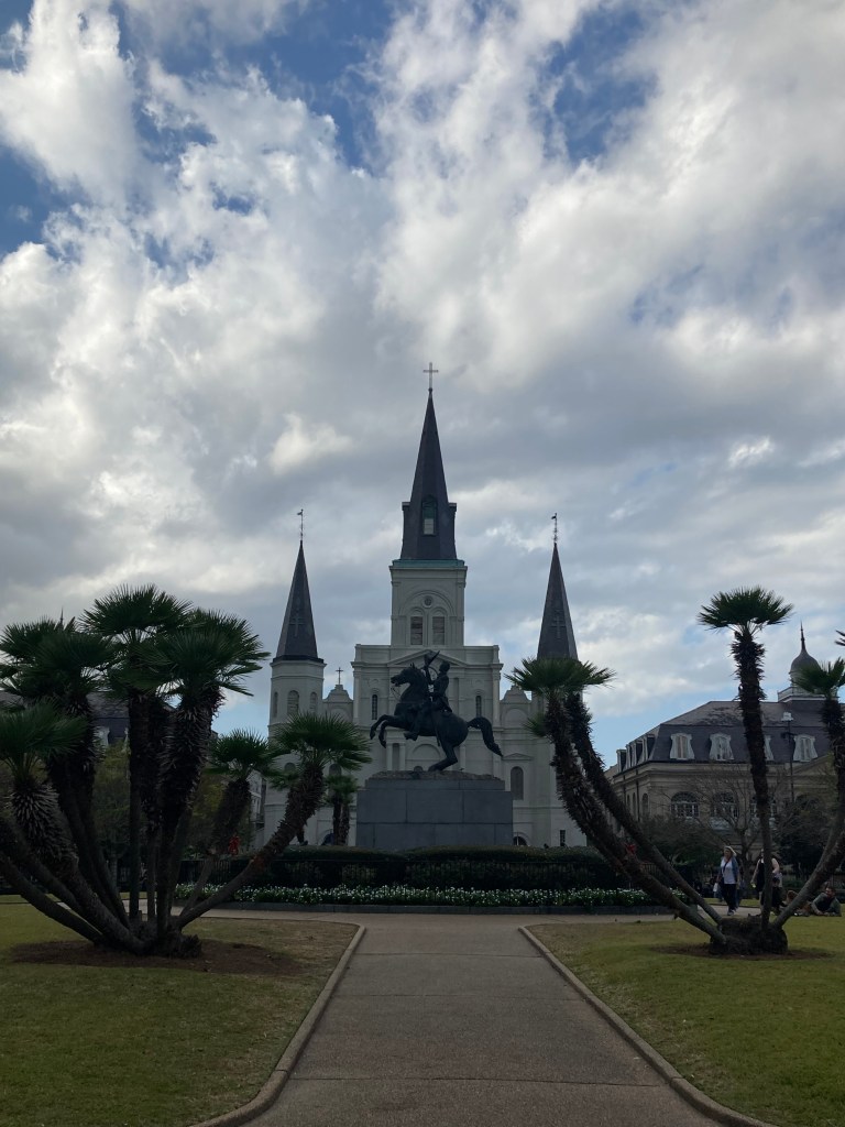 La catedral , bueno en realidad aún una parroquia de simple estructura de madera construida por los primeros colonizadores franceses , se incendió en el gran incendio de 1788, junto al Cabildo y al Presbiterio, y fue Almonaster quien bajo un buen acto de caridad, y siempre persiguiendo la promesa de recibir un título nobiliario, quien se encargó en cuerpo y en alma en su reconstrucción. No se tardó mucho, y ya en 1794 ( cuando Carondelet era el gobernador ) se inauguró el edificio que un año antes había conseguido ser nombrado catedral de Nueva Orleans.