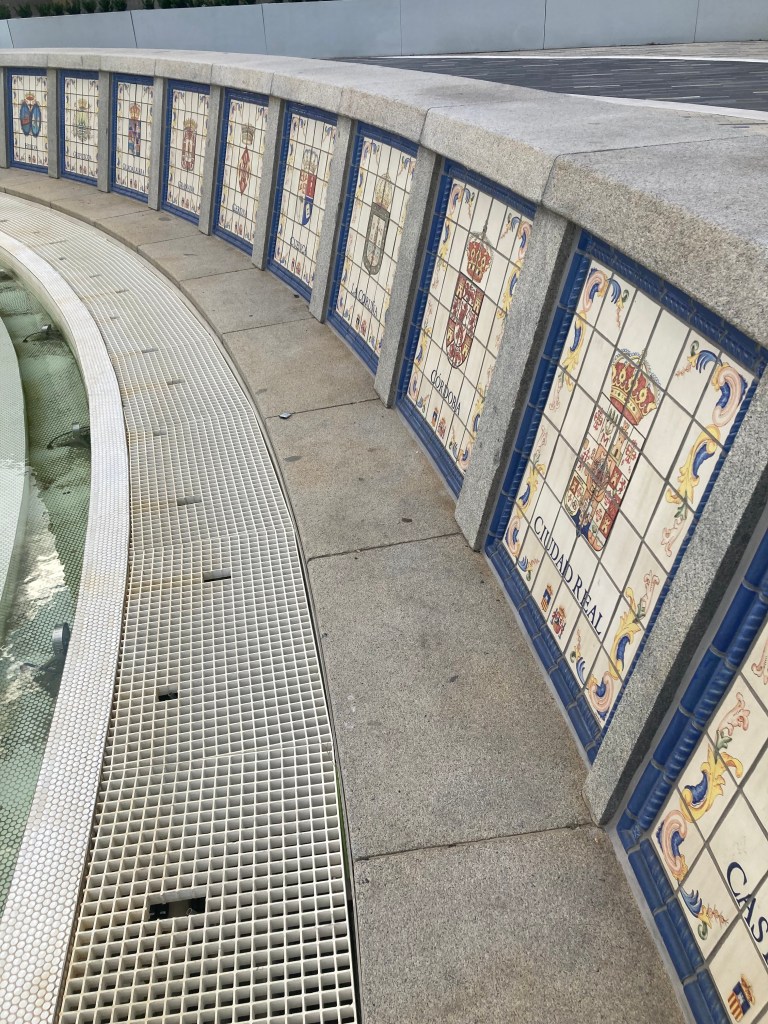 La plaza consta de una gran fuente rodeada de una bancada a modo circular con los escudos de las provincias españolas, el escudo de España y el de Luisiana. El proyecto se empezó en 1963 como símbolo de la herencia española en la ciudad de Nueva Orleans y se inauguró en 1976. Por el tiempo y las inclemencias climáticas los azulejos, así como la pintura se deterioraron y en 2001 con el motivo del bicentenario de EEUU se decide que es el momento de su remodelación.